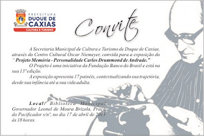 A partir desta quarta-feira (17/4), a Biblioteca Municipal Governador Leonel de Moura Brizola recebe a exposição Projeto Memória – Personalidade Carlos Drummond de Andrade.